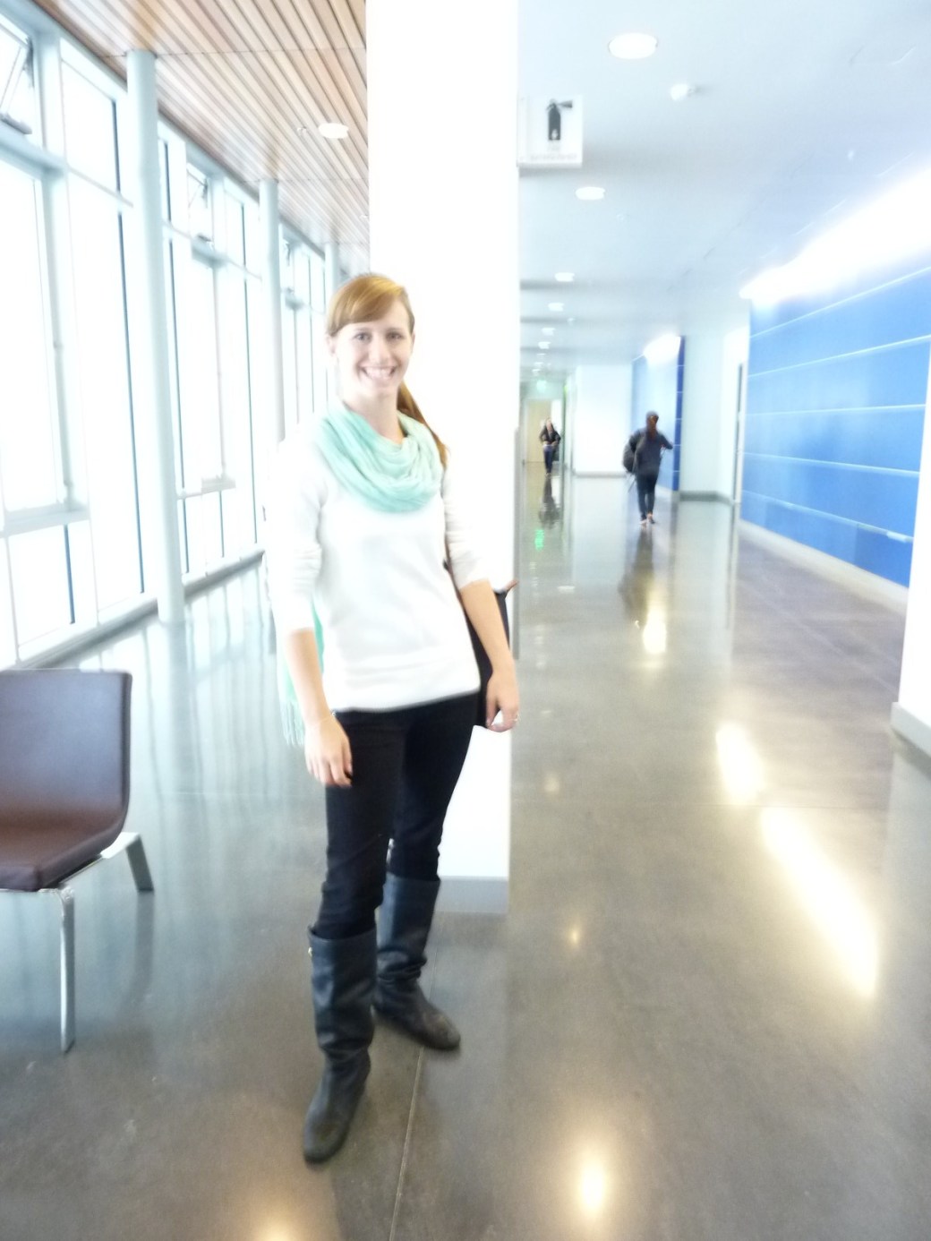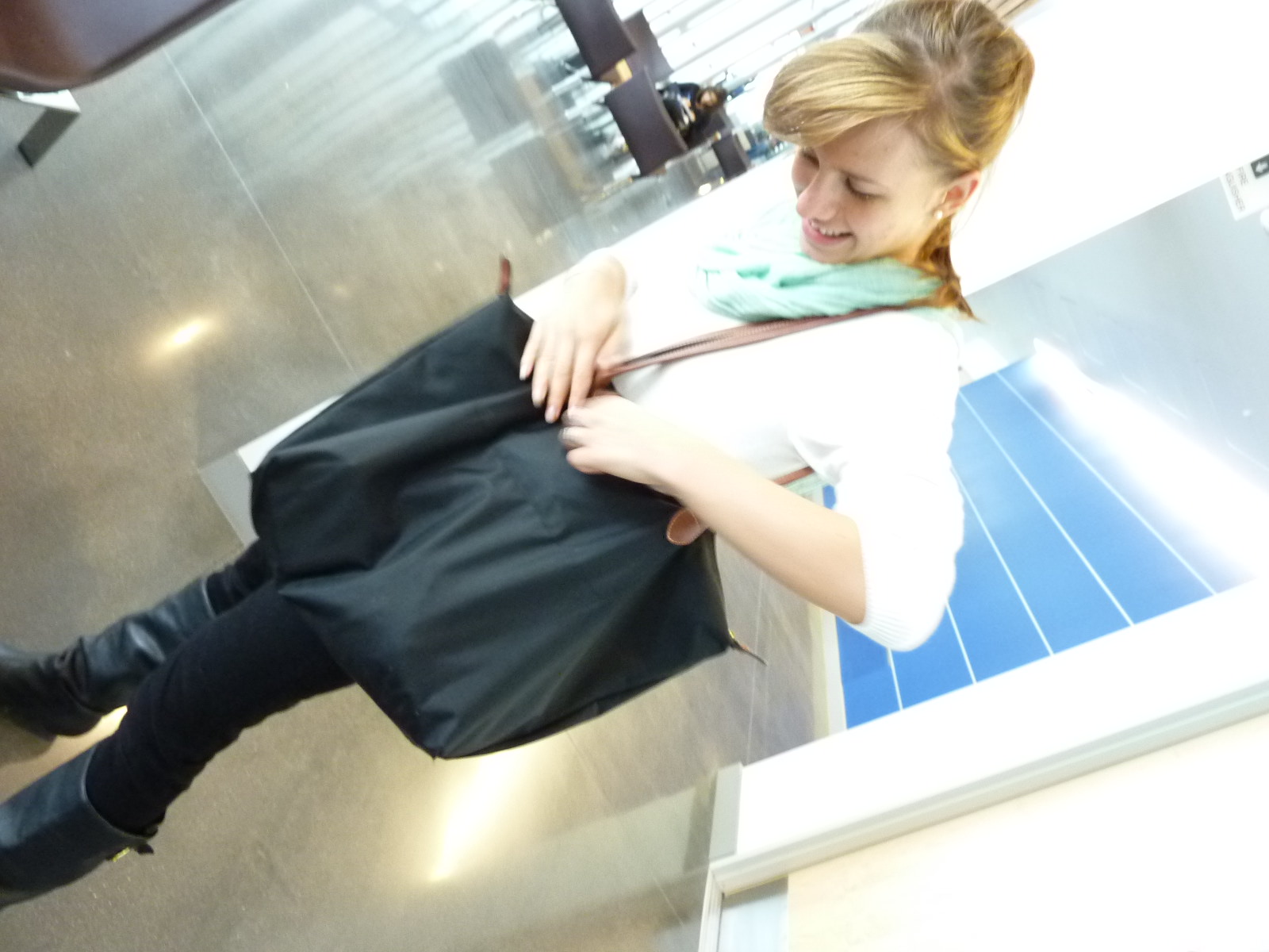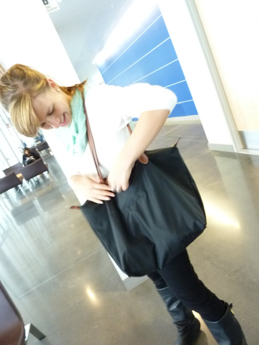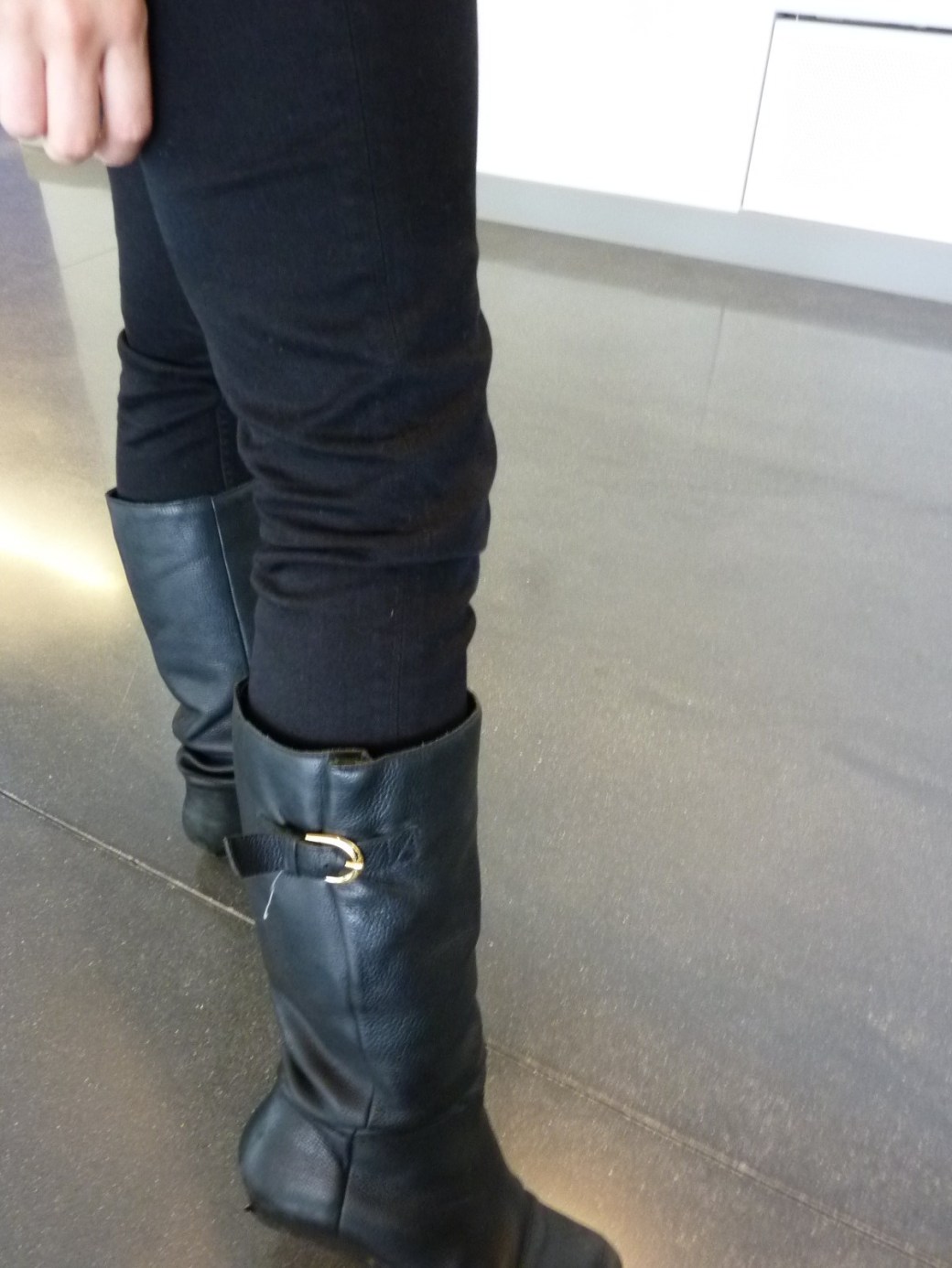 Cream Sweater – Gap, Hudson Jeans- Nordstroms, Steve Madden black leather boots – Nordstroms, Light Blue/ Turquise scarf- Nordstroms, Long Champs bag- Saks 5th Avenue