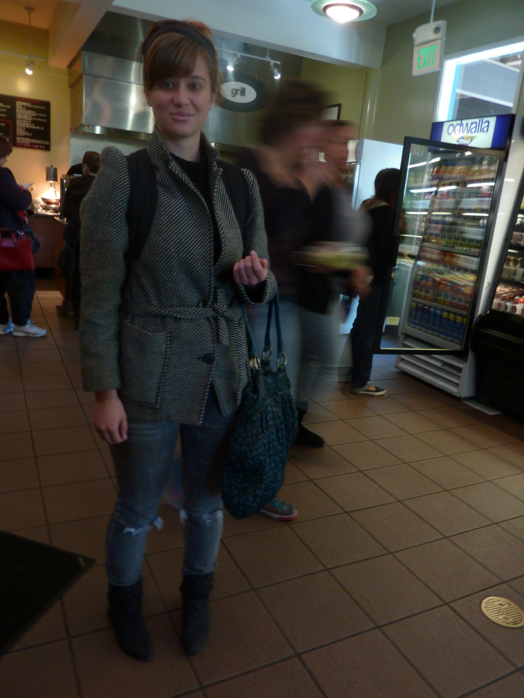 Why I chose her ? Her winter coat was well fitted, vibrant, well-structured and a good buy for these seasons. Her denim were nice and perfect for a day at school. Melanie’s boots were cute, short and definitely had personality.I love big bags and she was rockin’ a nice one.