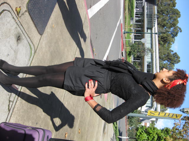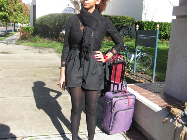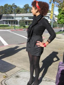 Why her ? She ( a Mills transfer transplant from Los Angeles, California) is a person who exudes style. Very few people can wear one solid color —adding multiple textures, shapes and styles to make an overall appealing ensemble. She wore one of a kind pieces like , the lace blouse and high waisted shorts that were connected to one another. ( You can’t tell from the photos)