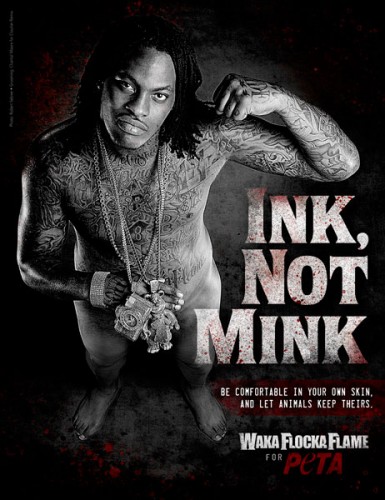 Yet, Rapper Waka Flocka joined PETA for INK NOT MINK campaign. Oh, Juaquin…must we be ratchet for animals…