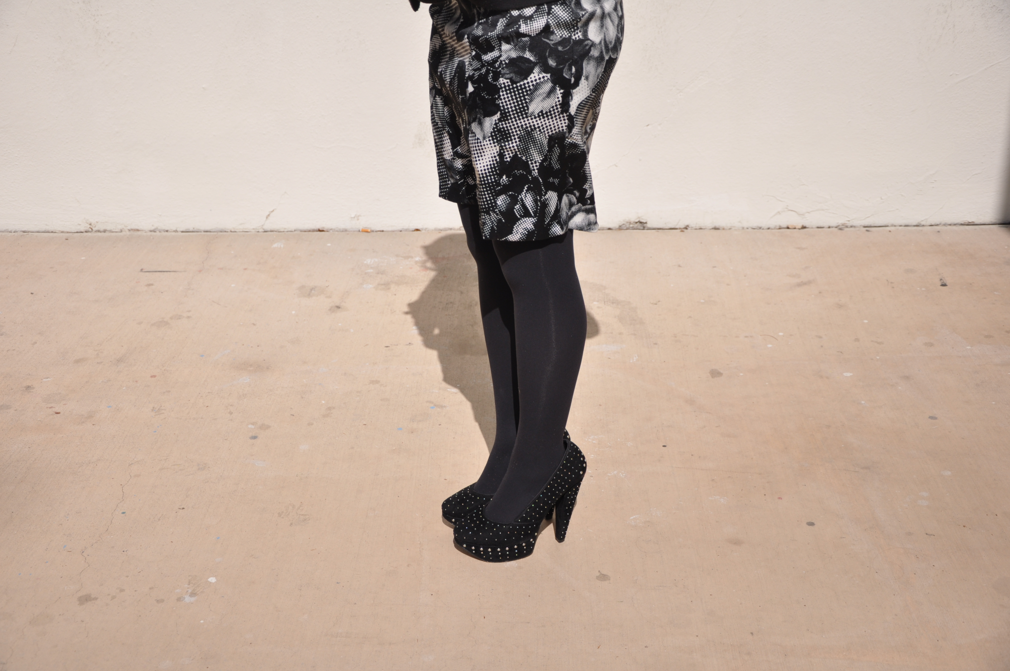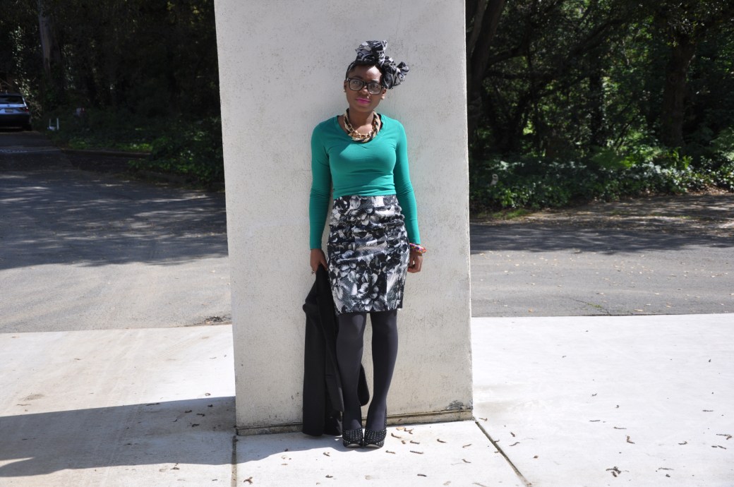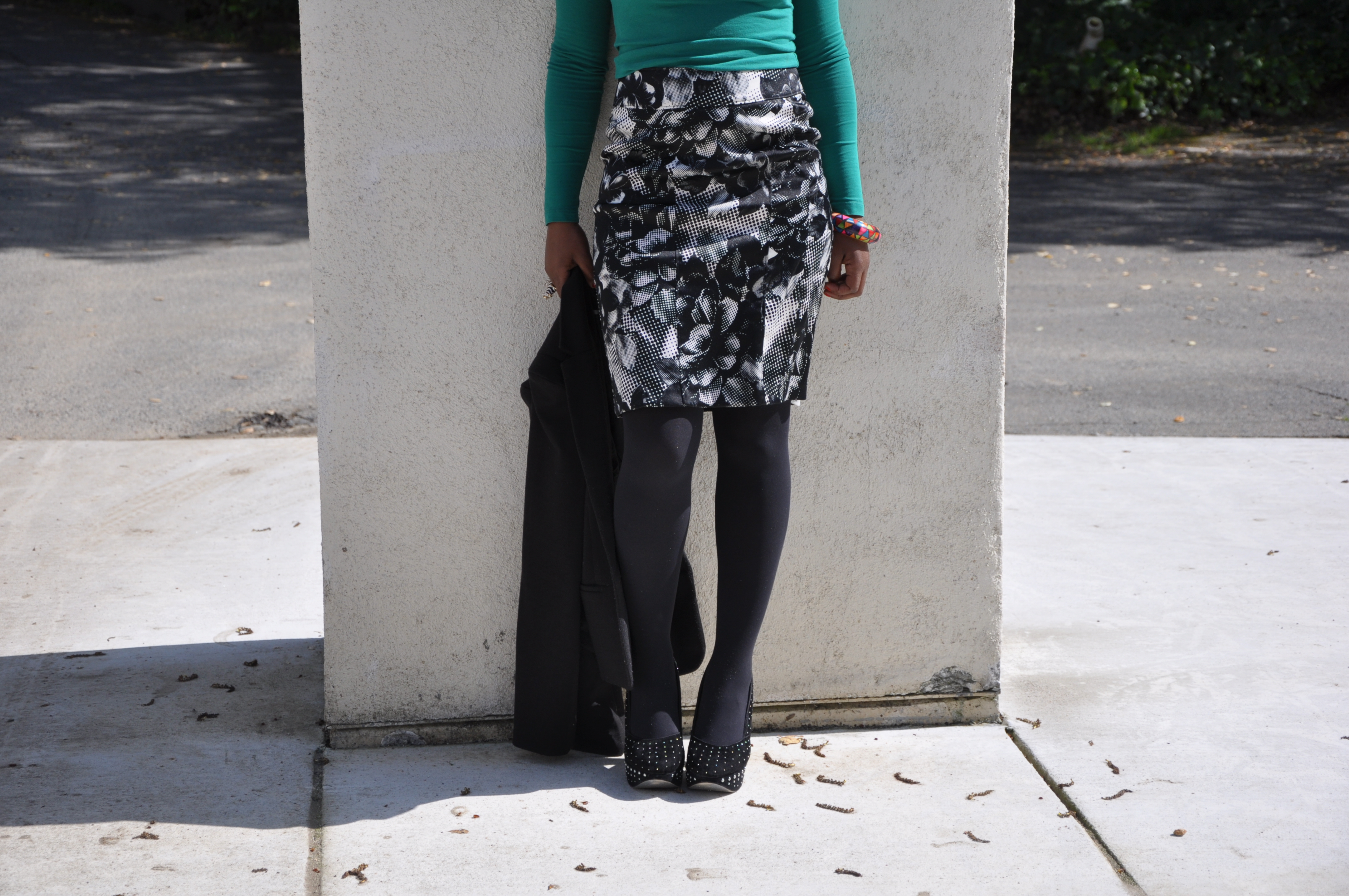 Shirt : Forever 21, Skirt: Forever 21, Pumps: Sheikh, Tights: Target, Bow: Grandmother, Necklaces: Thirft Town, Zebra ring & bracelet: Forever 21