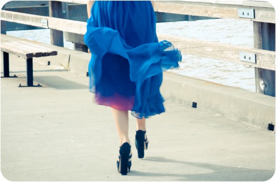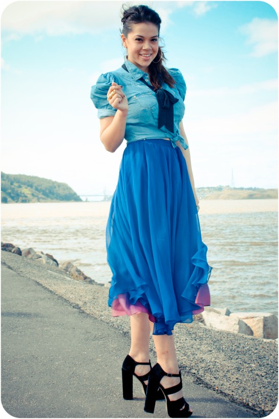 Ocean. Greenery Scenery. Long flowy skirt with deep blue hues. 5 to 7 inch pumps is the epitome of the photo of the day.