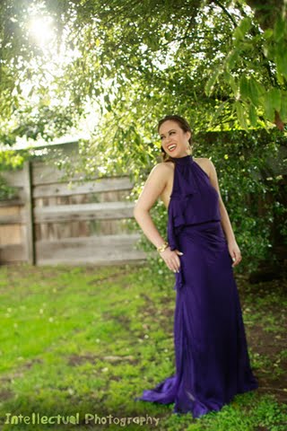 Nicole B., is utterly stunning in this indigo Carmen Marc Valvo floor -length dress. This look is classic,elegant and chic.