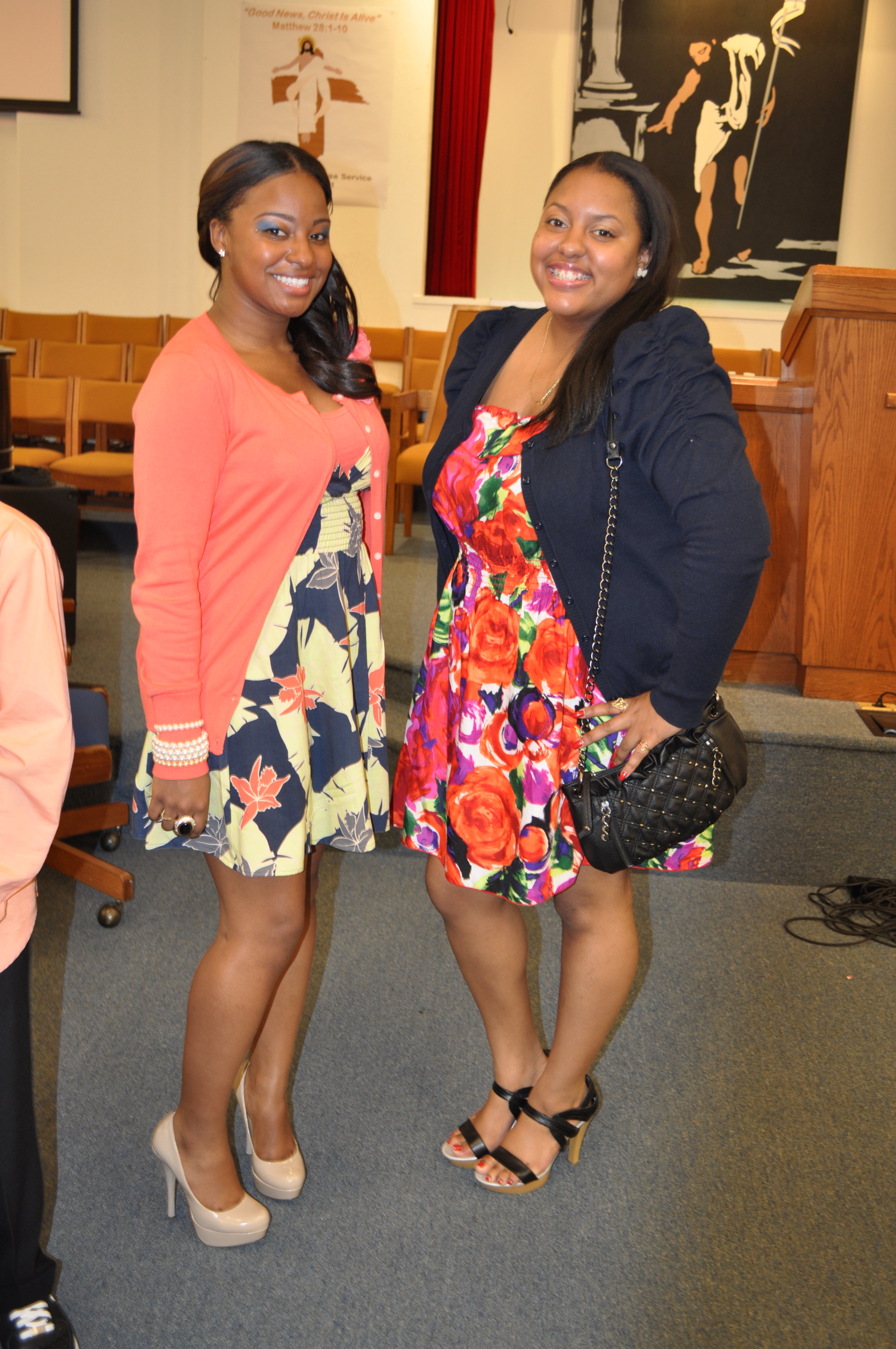 After, Easter brunch at church. I ran into two young Christianistas ( Christians + Fashionistas) who were wearing fab spring dresses from my favorite store Forever 21. Both of the ladies wore bright colors paired with cute jackets and pumps.