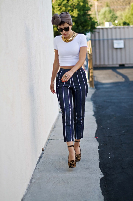 Karla, from Karla’s Closet, is rocking a fab turban with a mean leopard pump and a striped pant. Now,most women can’t make this work but with enough confidence and style…Karla makes it happen.