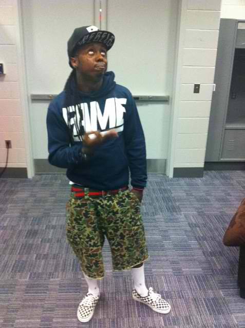 Lil Wayne rocking his camoflage shorts,high white socks, sweatshirt and his 1 million tattoos at HOT 97’s 2011 Summer Jam.