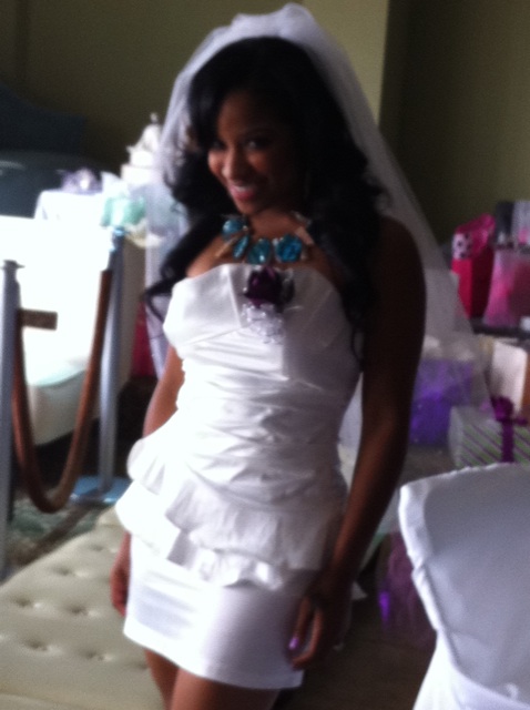 Kim K. is a fashionista who knows what trends work for her and what trends don’t. Color blocking works for her. I really like her hair in a bun, natural make-up and not too much jewelry so that it takes away from the dress. Kim K. gets a FABULOUS from me because it’s a perfect summer look.