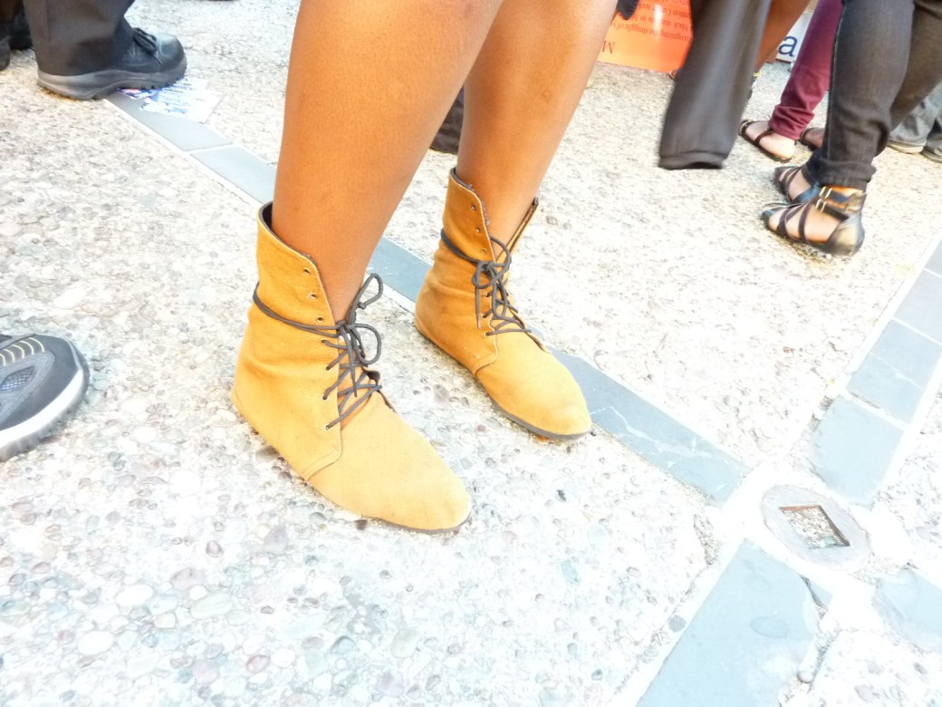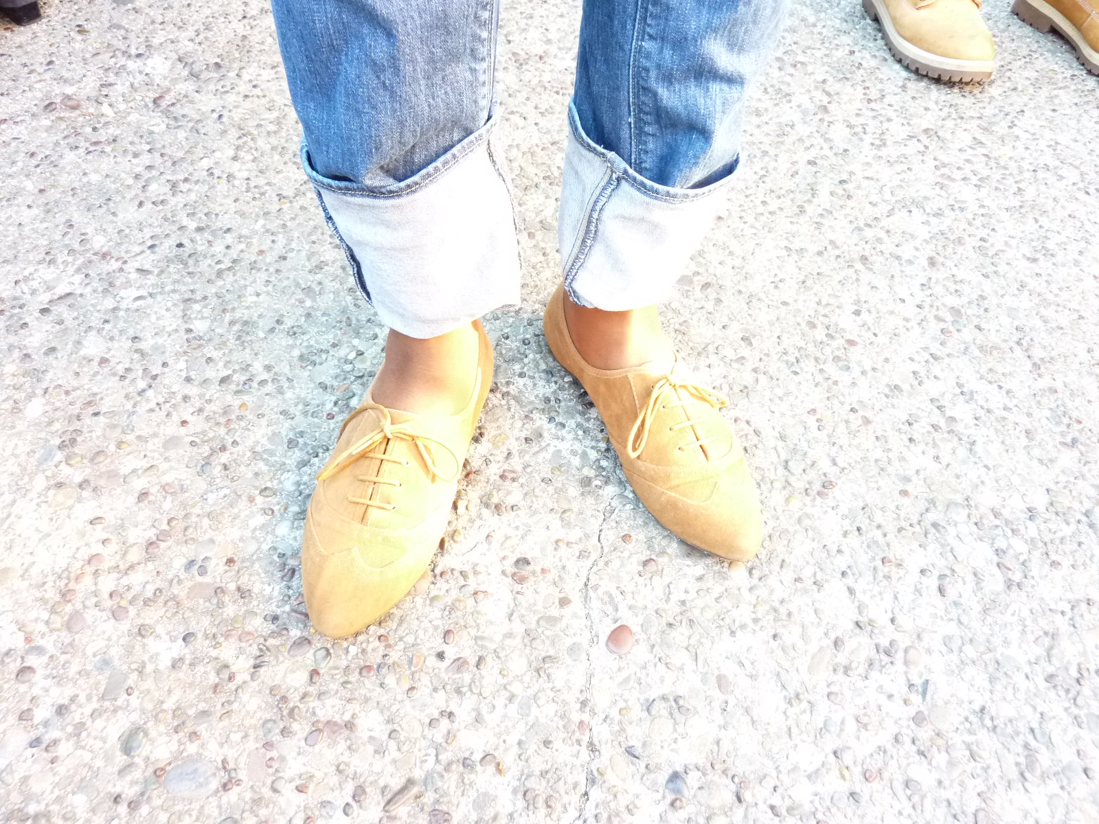 His smile, throw over the shoulder blazer, plaid button-up, orange pant and blue denim shoes were such a great look for a Friday. His friends told me that I made his day by taking his photo. Truth is : He help make my blog. Thanks !