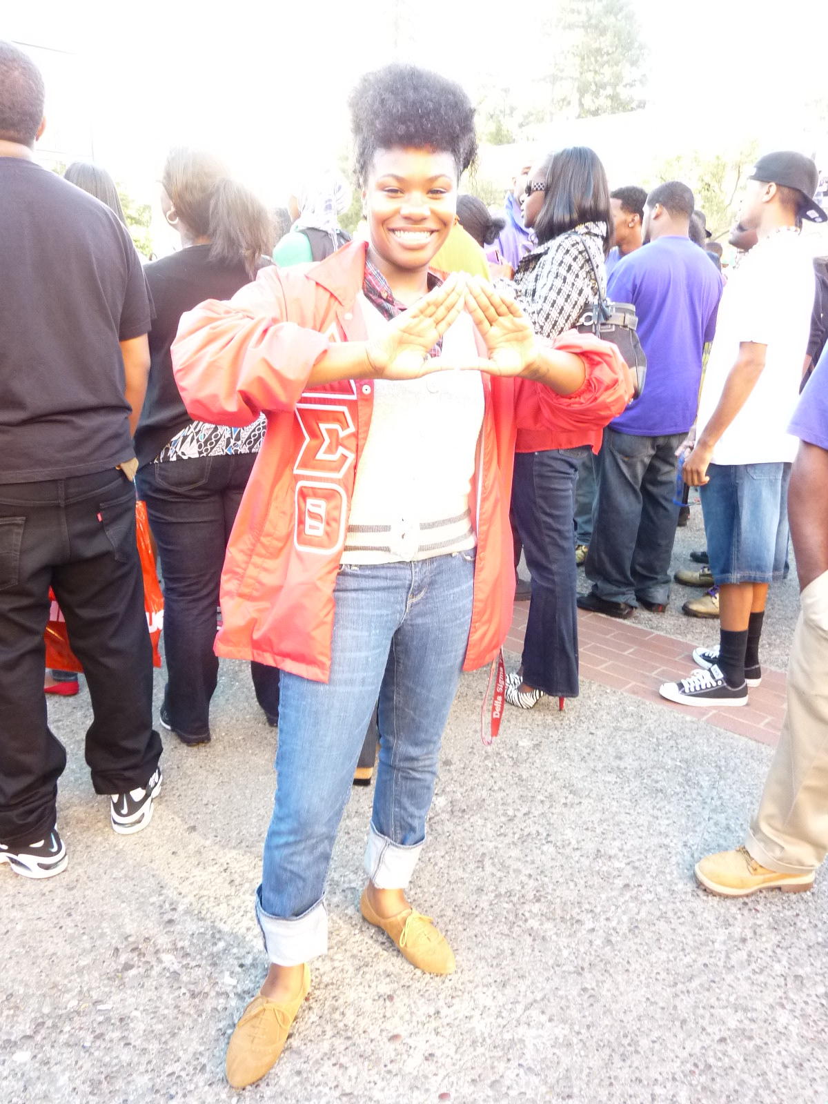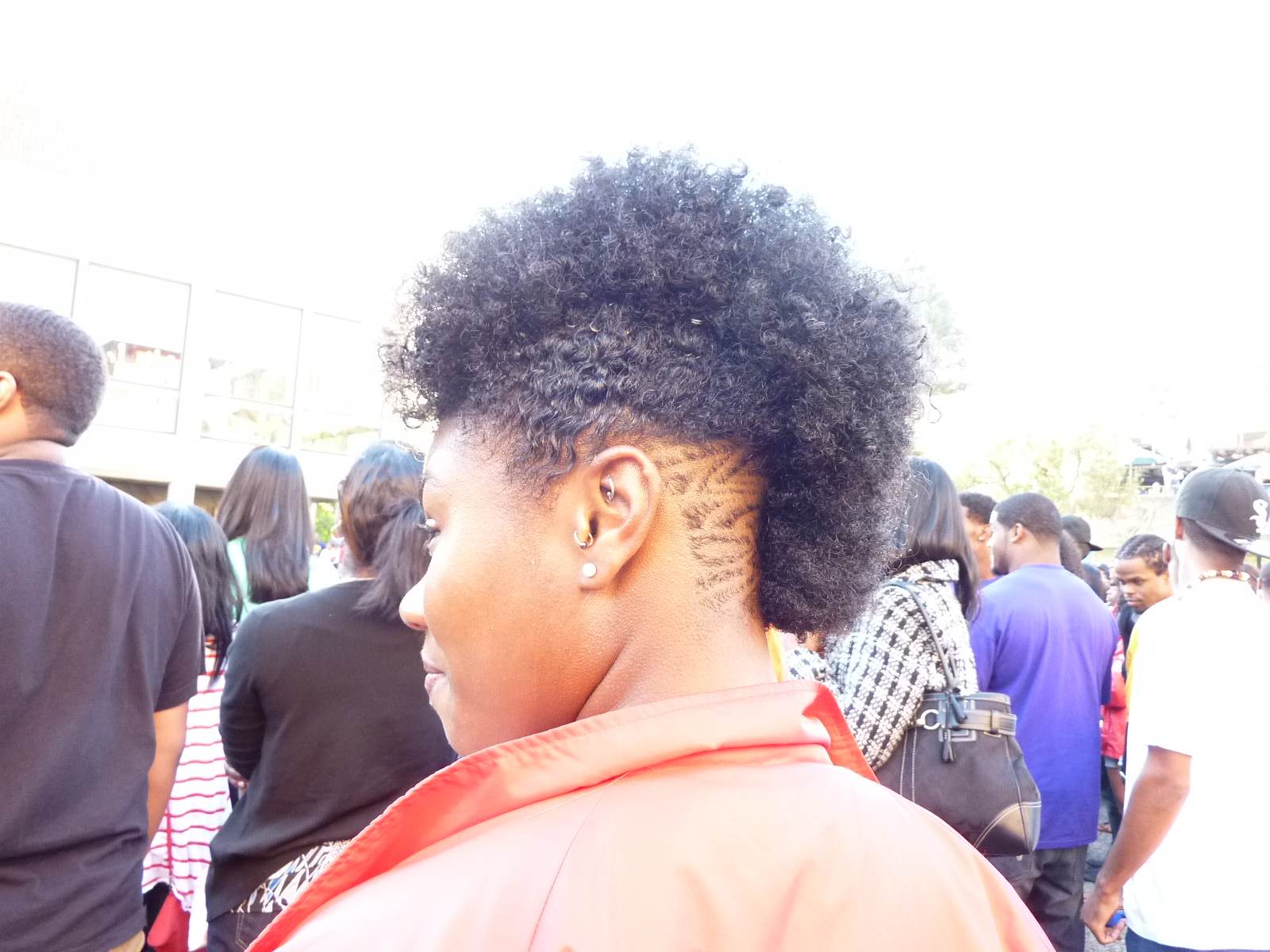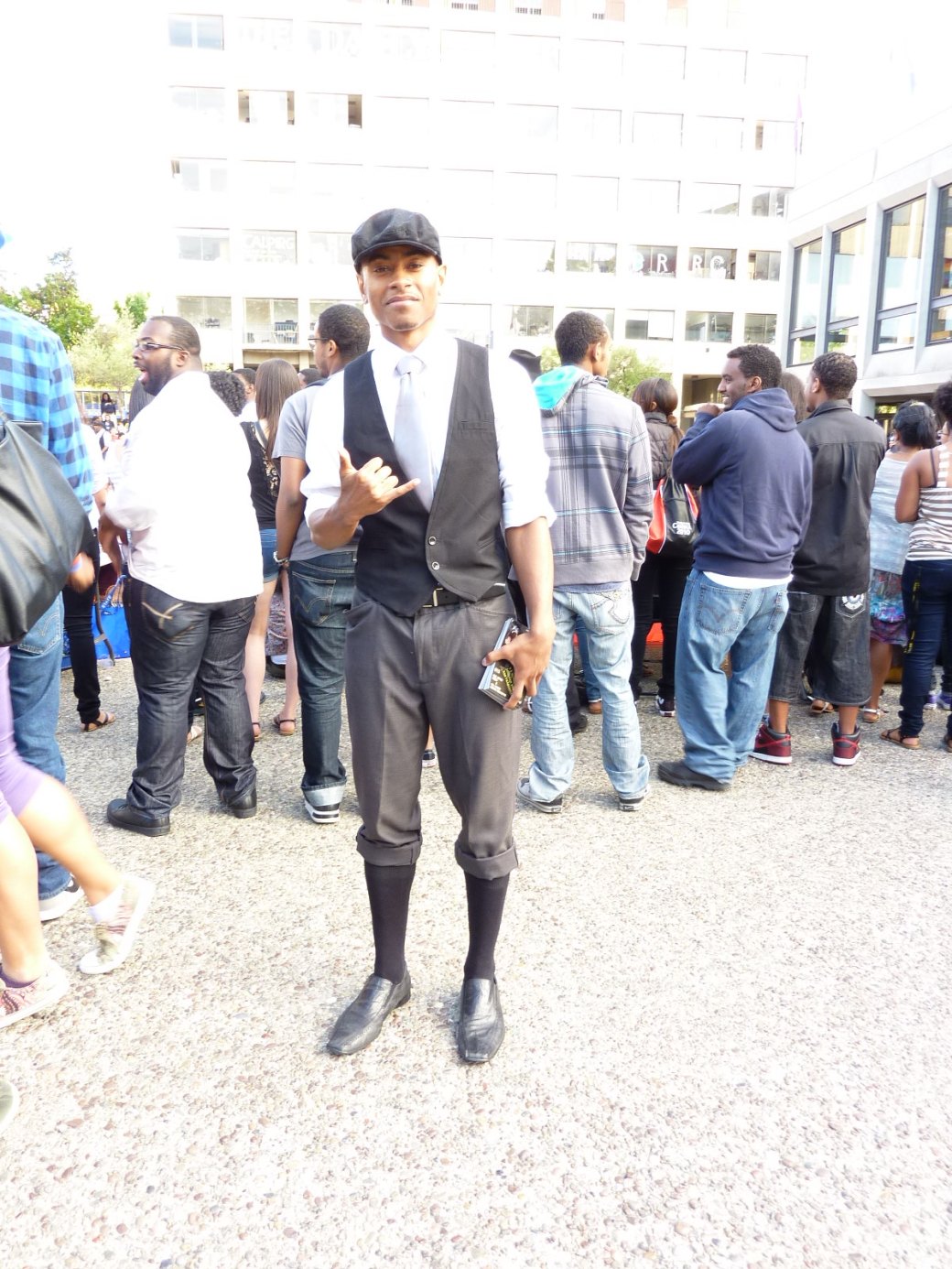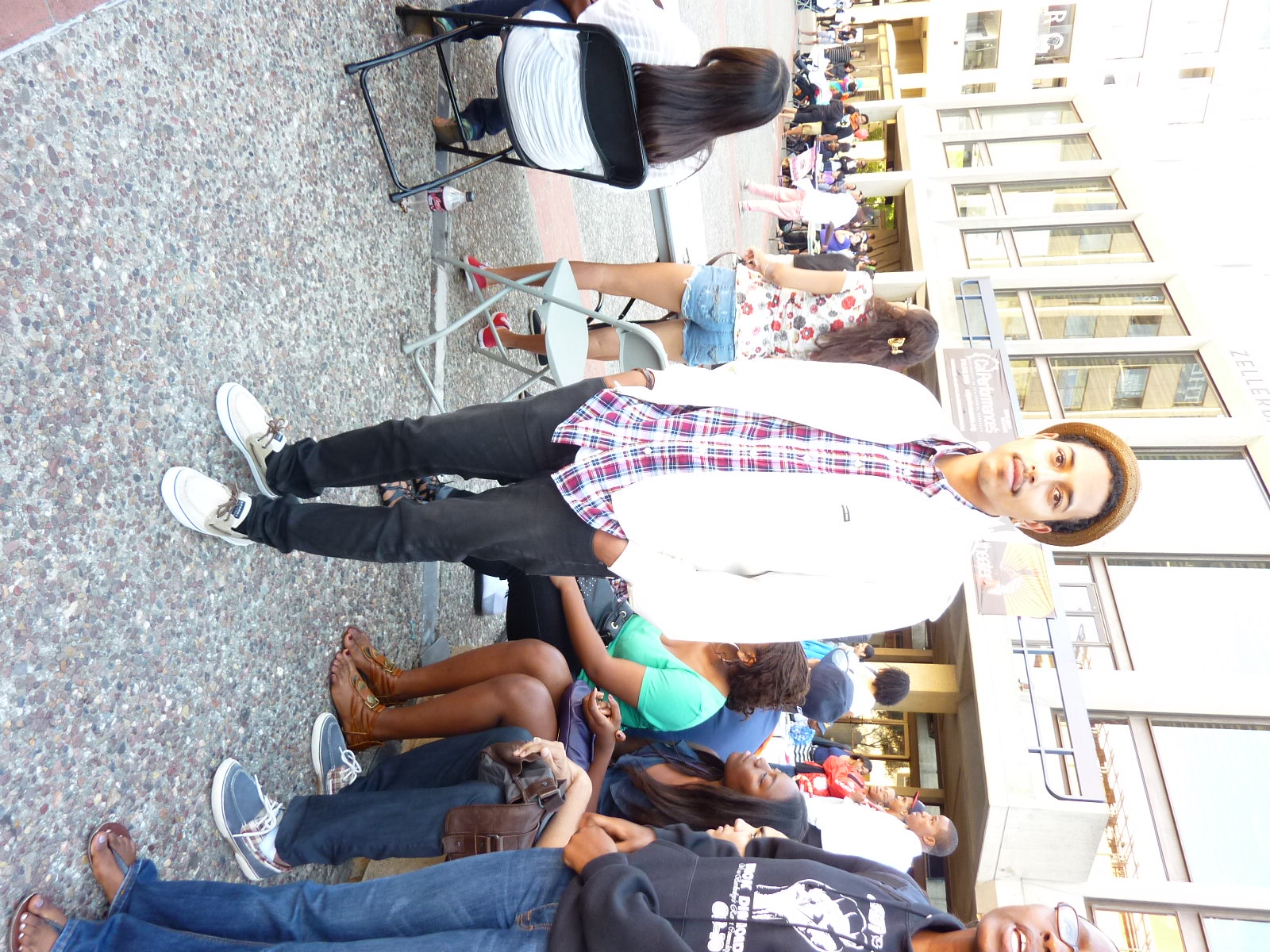 His shirt meant so much to me. In the East Bay, Black men are misrepresented in major media as being savage rapist, murderers and gang affiliated. His ensemble has a message that speaks volumes on who Black men are. Black men are attractive, positive and loving human beings. This photo was taken at the University of California, Berkeley.